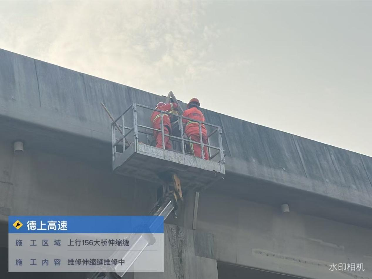 除此之外,工作人员还向记者提供了相关图片,图上水印显示:德上高速,施工区域为上行156大桥伸缩缝,施工内容为维修伸缩缝。但对于记者提出的缺损处是否属于该公司管辖路段,对方未作明确回复。