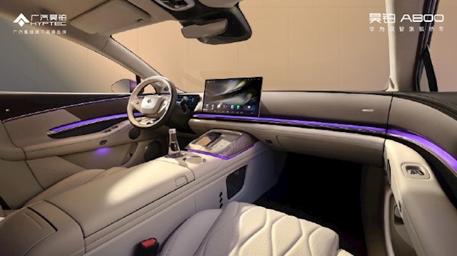 作为广汽与华为深度合作旗舰,新车采用10.25英寸的全液晶仪表与14.6英寸的中控大屏,搭载华为鸿蒙座舱系统,环抱式布局,支持多设备协同和OTA升级。
