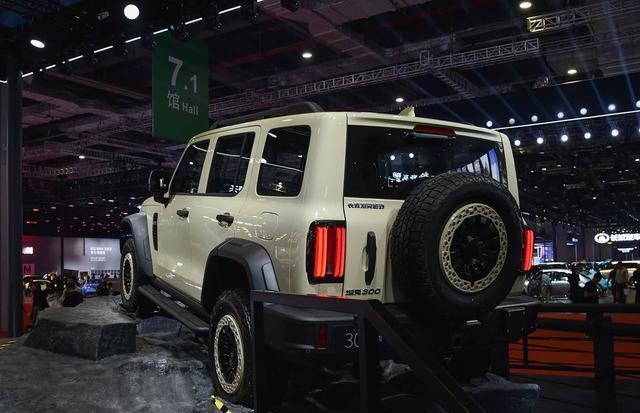 再来看车尾部分,车尾设计延续了硬派越野的实用主义哲学。后保险杠采用分体式设计,上部集成高位刹车灯与倒车摄像头,下部预留拖车钩接口与备胎架扩展位。尾门采用侧开式设计,开启角度达270度,方便在狭窄空间取放物品。外挂式备胎罩采用金属材质,表面蚀刻"TANK"品牌标识,既保护备胎又提升视觉辨识度。后窗采用隐私玻璃设计,配合后雨刷器确保恶劣天气下的视野清晰。尾灯组采用LED光源,夜间点亮时形成独特的"T"字形光带,具有极高的辨识度。